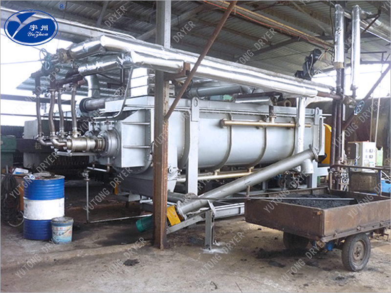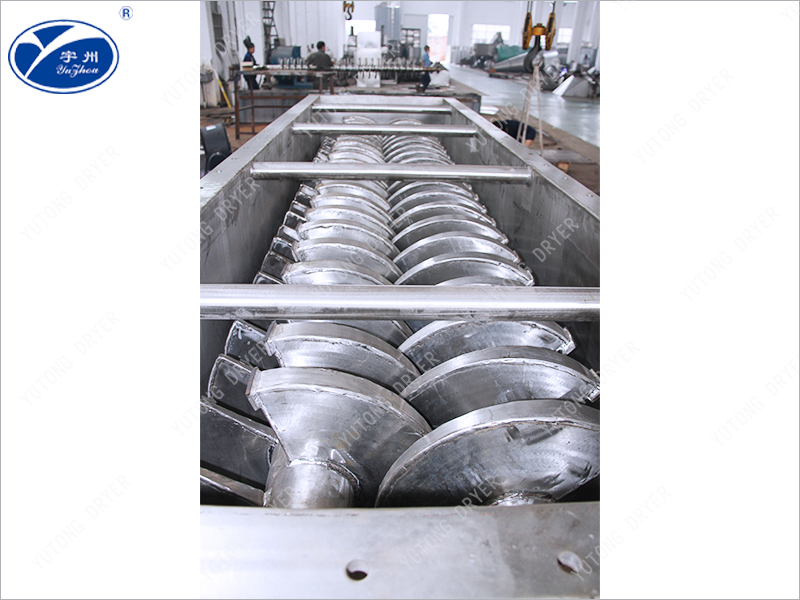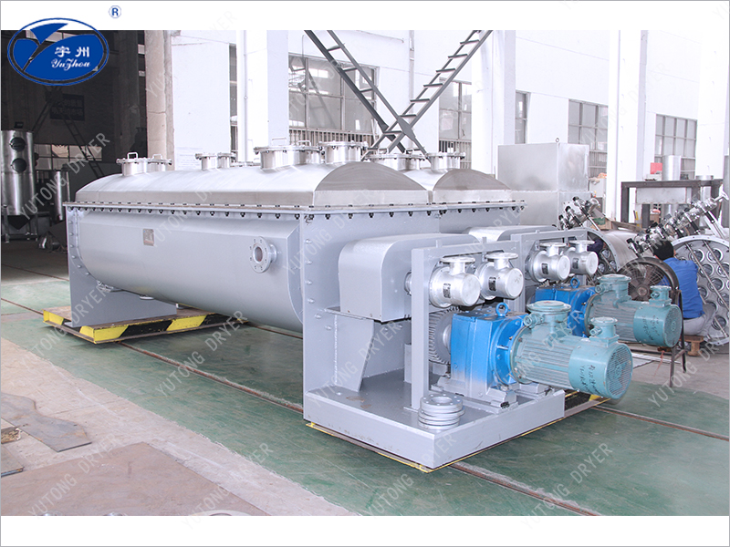 Wedge shaped hollow blades are densely arranged on the hollow shaft, and the heat medium flows through the blades through the hollow shaft. The heat transfer area within a unit effective volume is large, and the temperature of the heat medium ranges from -40 ℃ to 320 ℃. It can be steam or liquid, such as hot water, thermal oil, etc. Indirect conduction heating does not carry away heat with air, and the heat is used to heat the material. The heat loss is only the heat dissipation to the environment through the insulation layer of the device body. The wedge-shaped blade heat transfer surface has self-cleaning function. The relative motion between the material particles and the wedge-shaped surface produces a scrubbing effect, which can wash away the attached material on the wedge-shaped surface and maintain a clean heat transfer surface during operation. The shell of the blade dryer is Ω - shaped, and generally two to four hollow mixing shafts are arranged inside the shell. The shell has a sealed end cover and an upper cover to prevent material dust leakage and fully exert its function. The heat transfer medium flows through the shell jacket and hollow stirring shaft through the rotating joint. The hollow stirring shaft has different internal structures according to the type of heat medium to ensure the best heat transfer effect.