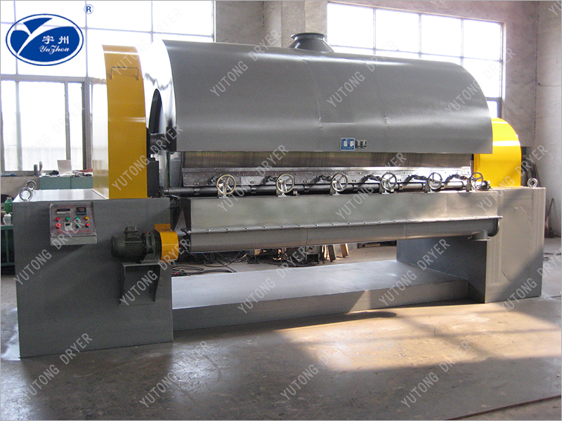 Introduction:The drum scraper dryer is an internal heating and conduction type rotary drying equipment. Wet materials obtain heat transferred through thermal conduction on the outer wall of the drum, removing moisture to achieve the required moisture content. The heat is transferred from the inner wall of the cylinder to the outer wall, and then passes through the material film. It has high thermal efficiency and can be operated continuously, so it is widely used for drying liquid or strip materials, and is more suitable for paste and viscous materials.
