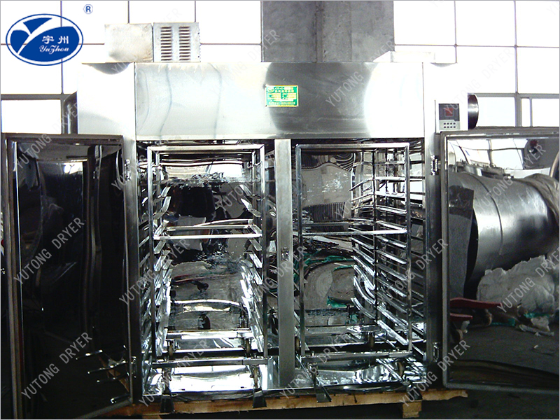 After multiple modifications, the CT-C series oven has been formed, which all uses axial flow fans, is equipped with an automatic constant temperature control system, and has a backup computer control system for selection. The thermal efficiency reaches about 70%. It uses steam or electric heat sources to heat the air through convection heat transfer in the heat exchanger using an axial flow fan. The hot air flows laminar through the drying plate and transfers heat to the material. Continuously replenishing fresh air and continuously expelling humid and hot air to ensure appropriate relative humidity inside the oven. The major feature of this series of ovens is that some of the hot air circulates inside the oven, and the entire circulation process is enclosed, thereby enhancing heat transfer and saving energy.