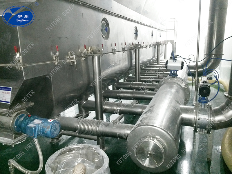 When the closed-circuit boiling dryer works, the internal wind pressure is low, and only micro positive pressure is required, so the fan power of the equipment is reduced, because the hot air is blown upward from the lower part of the hopper net plate under positive pressure, and the wind penetration is strong. Although the boiling height of the material is not high, the contact between the hot air and the material is more full, and the drying rate is faster. After the fan power of the equipment is reduced, the noise of the equipment is reduced, and energy is also saved.