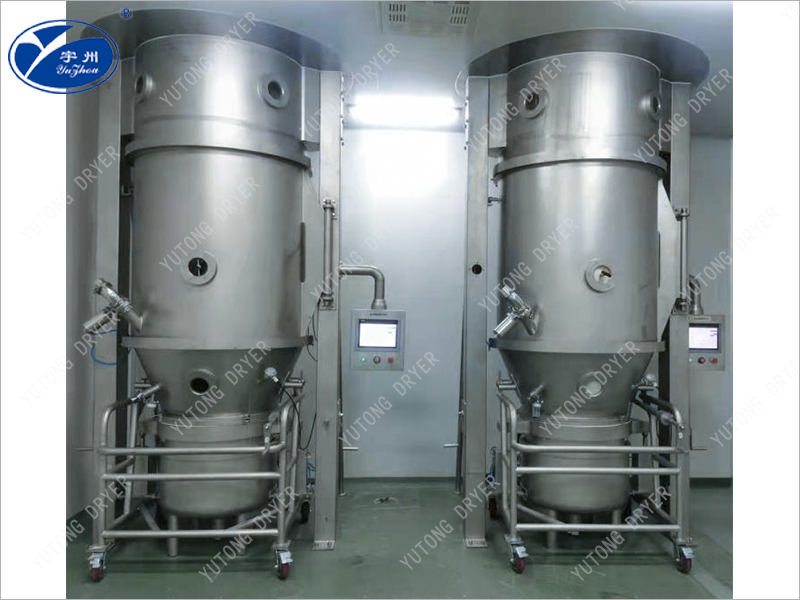The fluidized bed air distribution plate is made into a special annular plate structure, with each plate forming a stacked form, allowing the airflow to pass through the gaps between the blades, forming a circulating high-speed airflow, thereby making the material move in a regular vortex like manner. The adhesive or coating liquid is sprayed into the regular flow material layer through the pneumatic nozzle installed on the side wall, thereby turning the powder into particles or obtaining a continuous and uniform film coating.