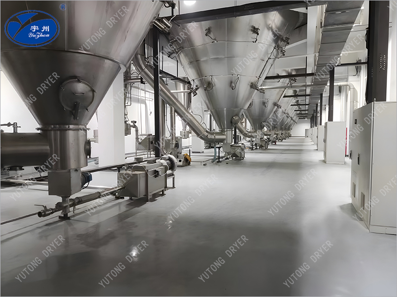 (4)生產過程簡化,操作控制方便。噴霧通常用于處理濕含量40%-90%的溶液,能一次干燥成粉狀產品,大部分產品干燥后不需要再進行粉碎和篩選,從而減少了生產工序,簡化了生產工藝流程。產品的粒度、松密度、水分在一定范圍內,可用改變操作條件進行調整,控制比較方便。