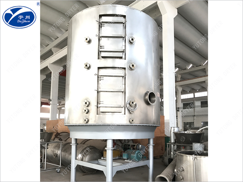 含有溶劑的濕物料通過螺旋加料器連續加入主機加料斗,物料在攪拌電機作用下連續地加到干燥器上部一層干燥盤上,帶有耙葉的耙臂做回轉運動使耙葉連續的翻抄物料,使物料充分吸收熱量,物料沿指數螺旋線流過干燥盤表面,在小干燥盤上的物料被移送到外緣,并在外緣落到下方的大干燥盤的外緣,在大干燥盤上的物料向里移動并從中間落料口落入下層小干燥盤中,大小干燥盤上下交替排列,物料得以連續的流過整個干燥器,中空的干燥盤內通入加熱介質導熱油。加熱介質由干燥盤的一端進入干燥盤面,從另一端導出。已干燥的物料從后一層干燥盤落到殼體的帶冷卻底層,最后被耙葉移送到出料口排出進入底部出料螺旋,并經緩沖罐排出機外。濕份溶劑從物料中蒸發汽化后逸出,由設在頂部的緩沖罐沉降后抽出,溶劑經冷凝器冷凝進入緩沖罐回收,濕空氣后排空。