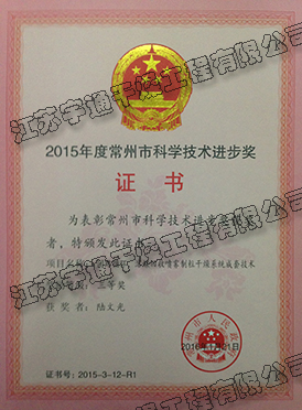 江蘇宇通干燥工程有限公司“閉路循環、溶媒回收噴霧制粒干燥系統成套技術”項目在常州市科學技術進步獎中榮獲“三等獎”。