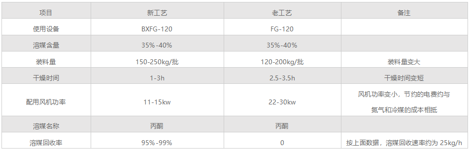 經閉路循環沸騰干燥機干燥之后含有溶媒的熱濕氣進入冷凝器,將氣體中的溶媒冷凝(溶媒回收率為95%以上),既可以回收溶媒又可以冷凝除濕干燥氣體。回收的溶媒可以再次循環使用,可以節約成本,同時不會造成尾氣排放對環境污染。