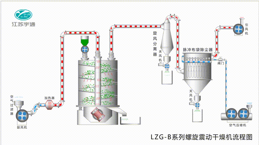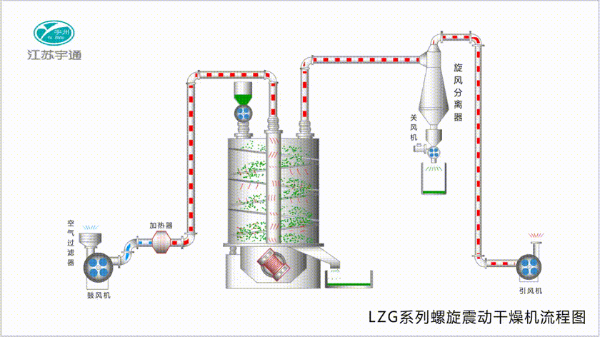 LZG系列螺旋振動干燥機主要適用于中藥丸劑的干燥,也可適用于化工、制藥、食品、塑料、建材、飼料等行業的顆粒狀、短條狀、球狀物料的干燥。