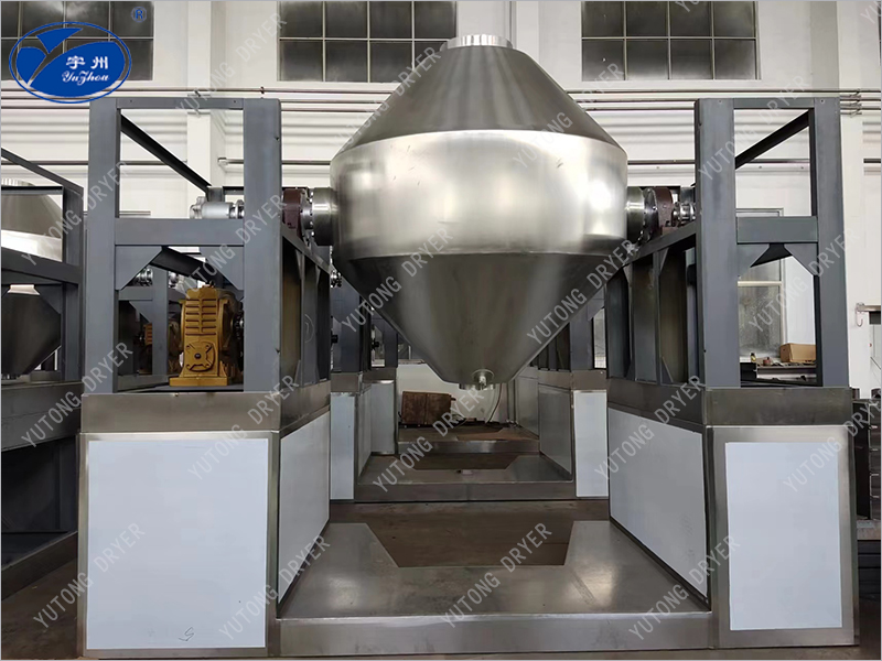 2、在動力驅(qū)動下,罐體作緩慢旋轉(zhuǎn),罐內(nèi)物料不斷地翻轉(zhuǎn),從而達(dá)到強(qiáng)化干燥的目的。