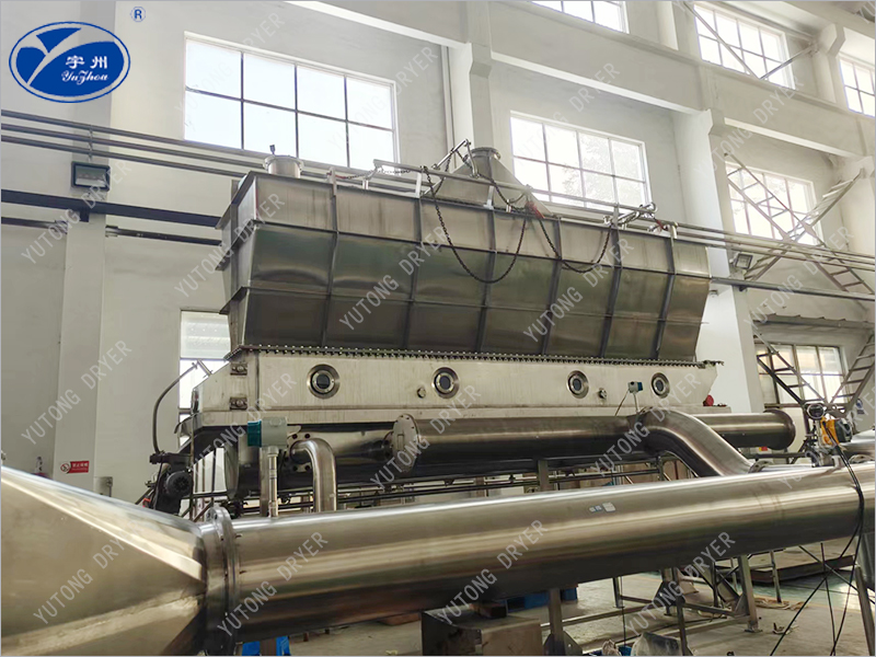 4、閉路循環沸騰干燥機帶有翻板機構,實現了在全密閉條件下進行出料,大大降低了工人的勞動強度與操作車間內完全無粉塵,車間環境好,自動化成度高。