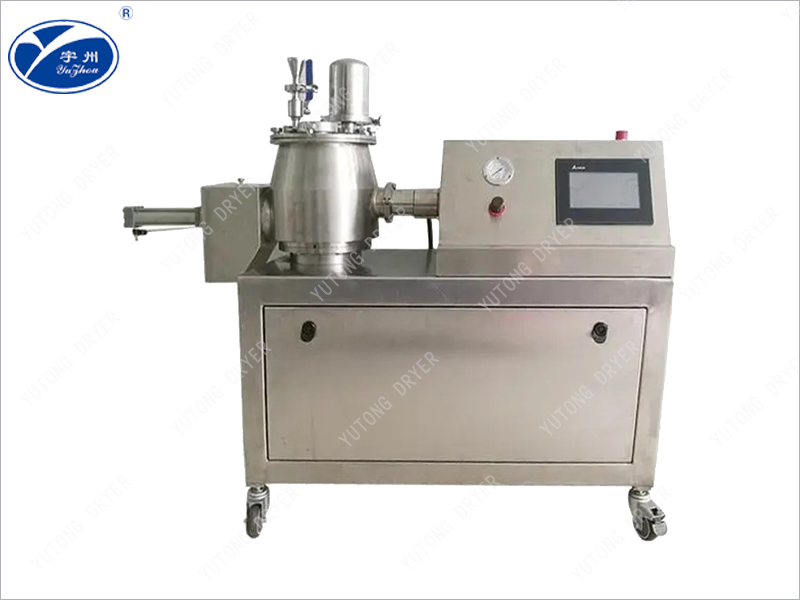 粉體物料與粘合劑在圓筒形容器中由底部混合漿充分混合成濕潤(rùn)軟材,然后由側(cè)置的高速粉碎槳切割成均勻的濕顆粒。