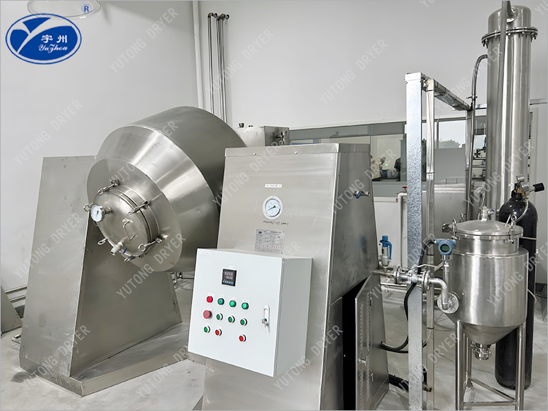 Ксероидная сушилка достигается путем введения тепловой энергии (например, горячей воды, пара низкого давления или горячего масла) в герметичную прослойку и передачи тепла через внутреннюю оболочку в сухую материальную хроматину. Под действием мощности резервуар медленно вращается, и частицы хроматины в резервуаре постоянно смешиваются, достигая цели усиления сушки. Цветоматериалы находятся в вакууме, и снижение давления пара приводит к тому, что вода (растворитель) на поверхности хроматины насыщена и испаряется, быстро выбрасывается вакуумным насосом и восстанавливается. Вода (растворитель) внутри хроматины постоянно проникает, испаряется и выводится с поверхности, чтобы достичь цели сушки материала в течение короткого периода времени.