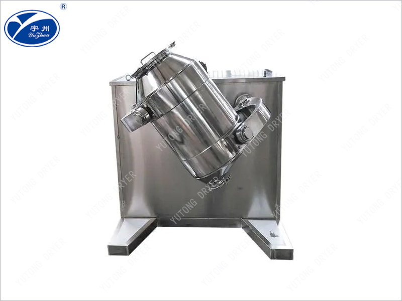 Во время работы смеситель имеет многонаправленное движение, которое ускоряет поток и распространение различных материалов в процессе смешивания. В то же время он избегает сегрегации плотности материала и накопления, вызванных центробежными силами в обычных смесителях. Смешивание не имеет мертвого угла, может эффективно гарантировать хорошее качество смеси. Конструкция: Машина состоит из основания, трансмиссии, электрической системы управления, механизма многонаправленного движения, мешалки и других компонентов. Барабан для перемешивания, находящийся в непосредственном контакте с материалом, изготовлен из нержавеющей стали, а внутренняя и внешняя стенки барабана полированы. Полностью соответствует требованиям GMP。
