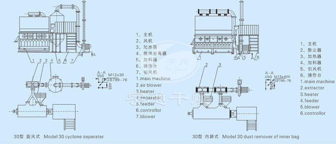 Частичные твердые материалы подаются питателем в сушилку с псевдоожиженным слоем, фильтрованный чистый воздух нагревается и подается воздуходувкой на дно псевдоожиженного слоя, контактируя с твердым материалом через распределительную пластину, образуя поток и осуществляя обмен газопоглощающим теплом. Когда материал высыхает, он высвобождается из выпускного отверстия, а выхлопные газы высвобождаются из верхней части псевдоожиженного слоя через группу циклонных пылеуловителей и мешковых пылеуловителей, а твердый порошок сбрасывается после рекуперации. Паровые, электрические и тепловые печи могут быть оборудованы (в соответствии с требованиями пользователя).Применяется к сухим гранулированным материалам, таким как фармацевтическое сырье, таблетированные частицы, частицы китайской медицины, пластиковые смолы в химическом сырье, лимонная кислота и другие порошкообразные и гранулированные материалы. Он также используется для сушки и увлажнения гранул пищевых продуктов и напитков, обработки зерна, зародышей кукурузы, кормов и т. Д. Размер зерна материала может достигать 6 мм, предпочтительно 0,5 - 3 мм.