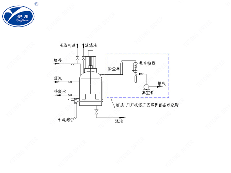 (3)Высушение: после тщательной очистки вводится сухой фильтр для продувания сжатым воздухом. Для материалов, требующих сушки, вводится пар или горячий воздух (азот) и высыхает в вакууме.